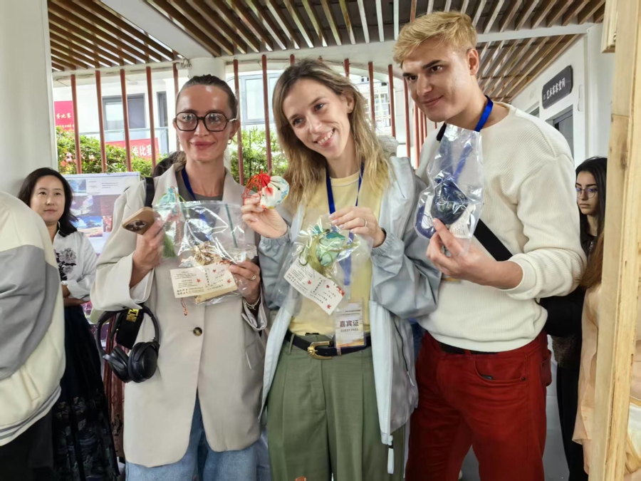 午后,稻田中央的露天舞台变身“跨国疗愈场”。青浦区文旅局和农工党青浦区委为薄荷香文苑送出了稻田里的“疗愈”音乐会,配合现场发放的薰衣草+艾草香囊,打造沉浸式减压体验。来自乌克兰的康斯坦丁(Konstantin)闭眼聆听时,嗅着香囊说:“这音乐像给大脑做了一场SPA,我要把香囊送给家乡的小伙伴!”
